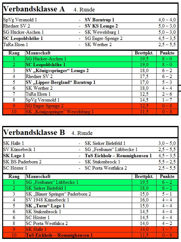 Während die drei lippischen Vereine in der Verbandsklasse Gruppe A in der oberen Tabellenhälfte sich festsetzen können, kämpfen die beiden weiteren Vereine in der Gruppe B (die summa summarum stärker besetzt ist) gegen den Abstieg. |